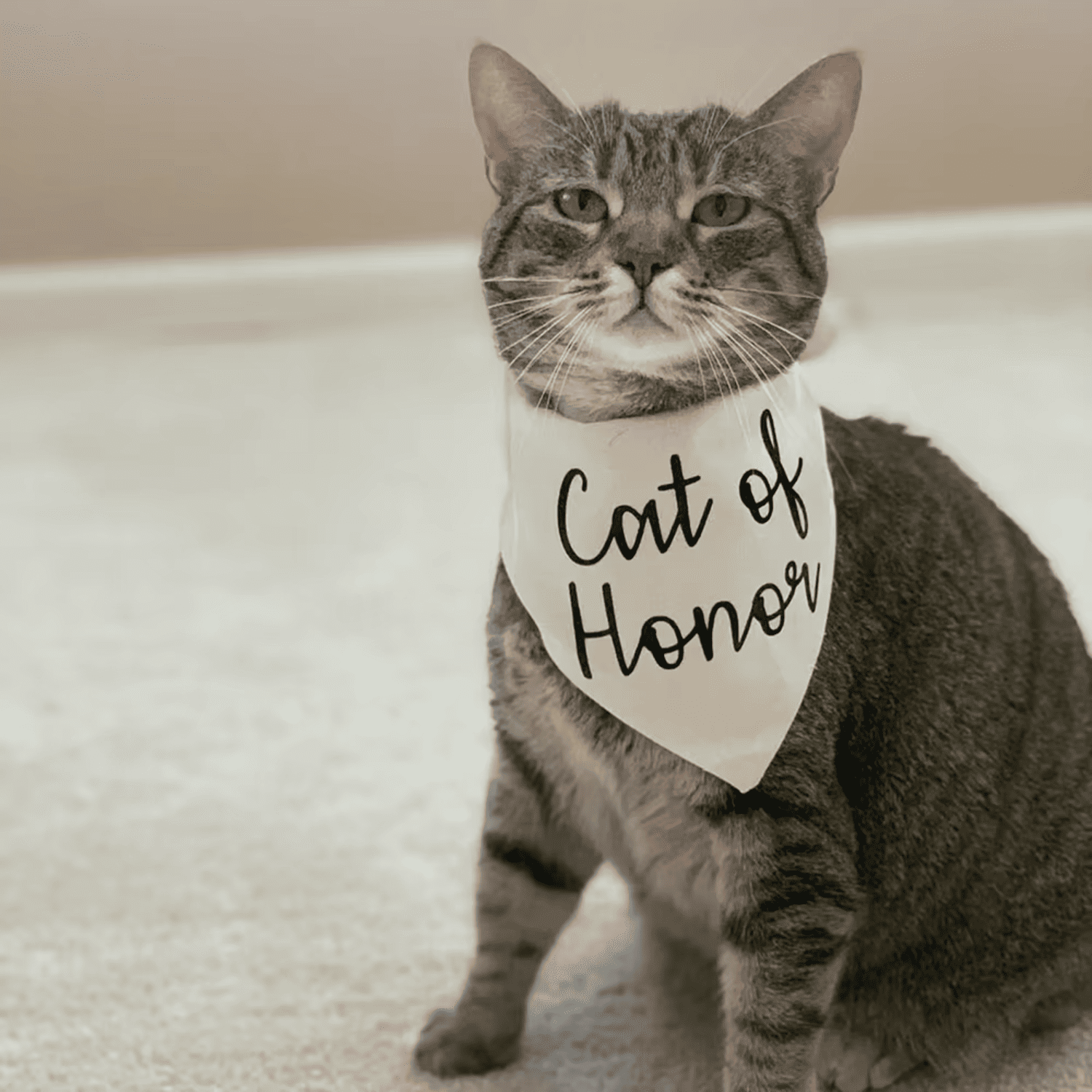 Jeśli Twój kot ma być honorowym gościem podczas ślubu lub sesji zdjęciowej, ta bandana z napisem Cat of Honor będzie perfekcyjnym dodatkiem.