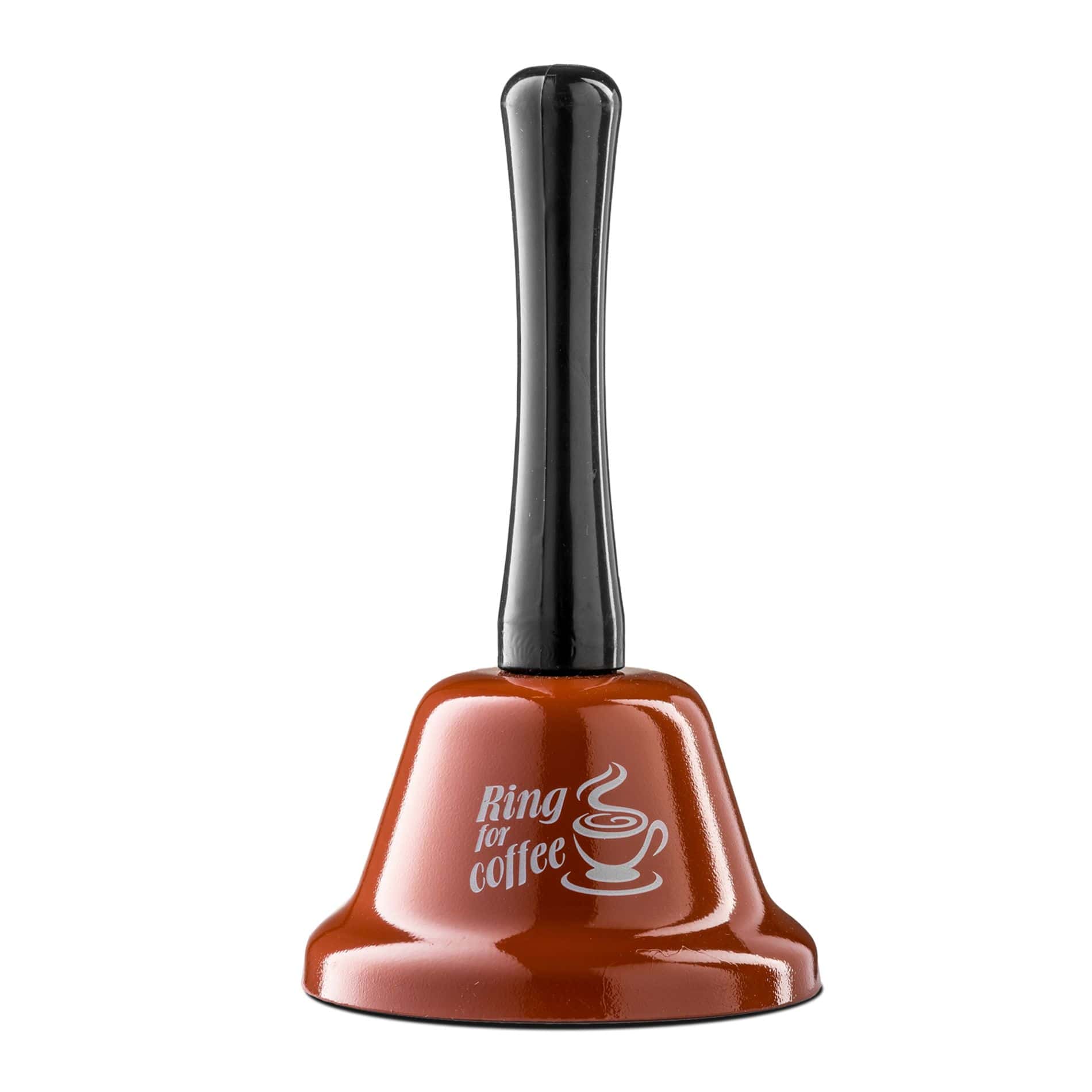 Cóż, Dzwonek na Kawę wygląda jak... dzwonek, posiada czarny uchwyt, kawowy kolor i dwustronny nadruk z napisem Dzwonek na Kawę z filiżanką świeżo zaparzonej kawy obok. Jednak to nie w wyglądzie jest jego moc, a możliwych zastosowaniach! Czy to w pracy, na uczelni, akademiku, domu z współlokatorami czy... kawiarni, w końcu czasem zabraknie baristy za ladą i trzeba go przywołać?