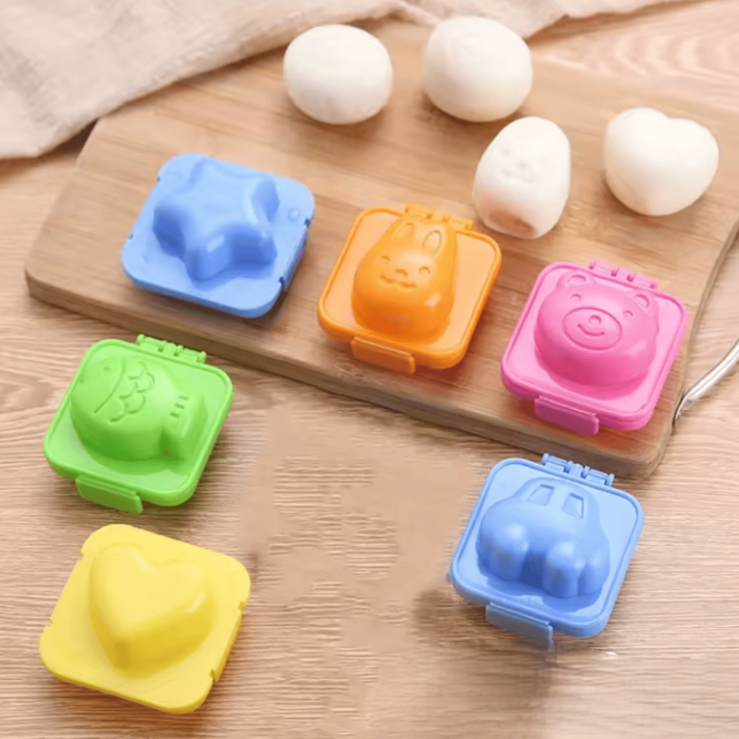 Formy wykonano z bezpiecznego dla żywności polipropylenu (PP). Każda forma jest lekka, trwała i odporna na wysoką temperaturę. Wystarczy włożyć ciepłe jajko do wnętrza foremki, zamknąć i schłodzić przez kilka minut – po otwarciu czeka Cię gotowy kształt prosto jak z bento boxa!