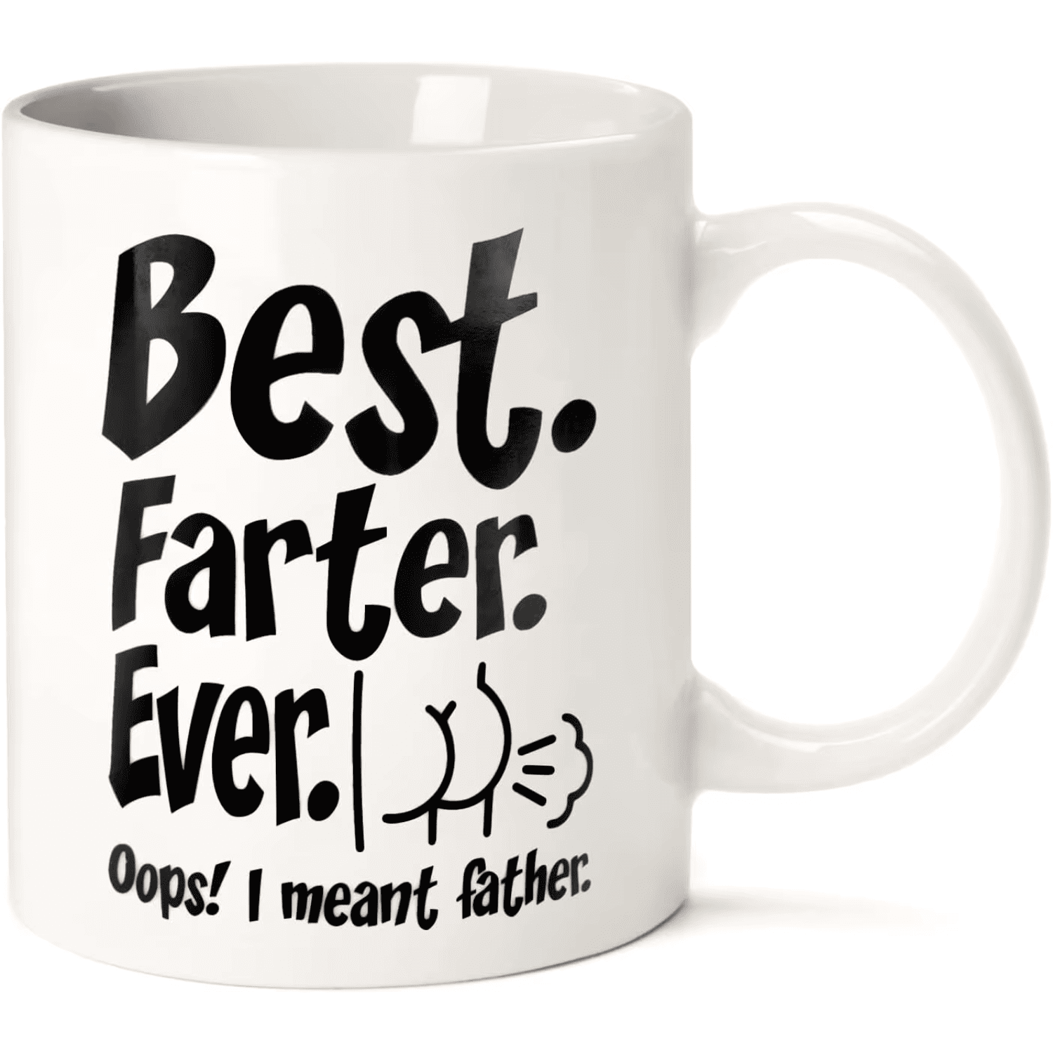 Szukasz prezentu, który rozbawi Twojego tatę? Kubek z napisem „Best Farter Ever – Oops! I meant Father.” to żart, który trafi w punkt każdego ojca z dystansem do siebie!
