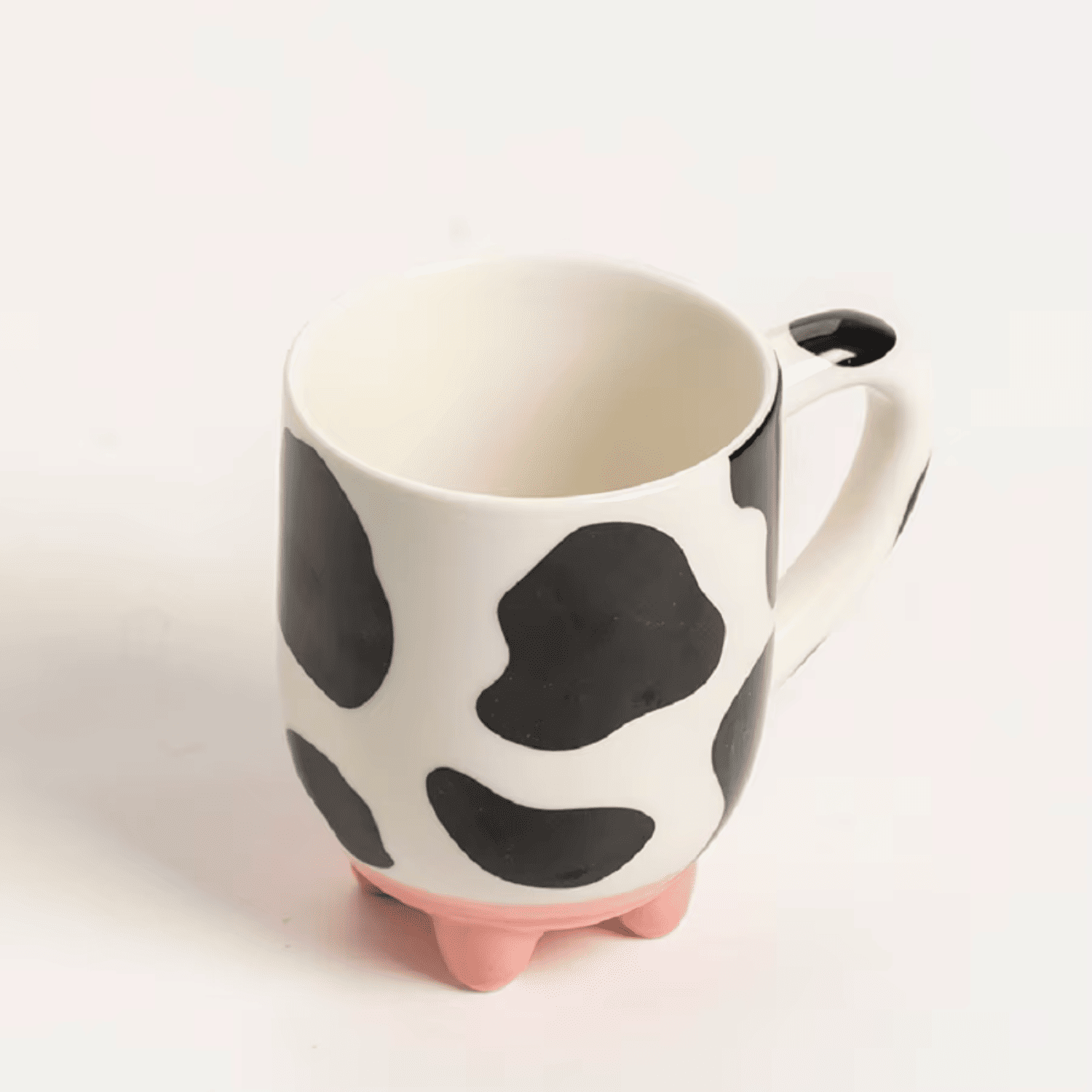 Ten kubek w krowie łaty to coś więcej niż zwykłe naczynie – to gwarancja uśmiechu przy każdej porannej kawie. Wykonany z ceramiki, wyróżnia się nietypowym detalem w postaci różowych wymion u podstawy, co nadaje mu zabawny i niepowtarzalny charakter.