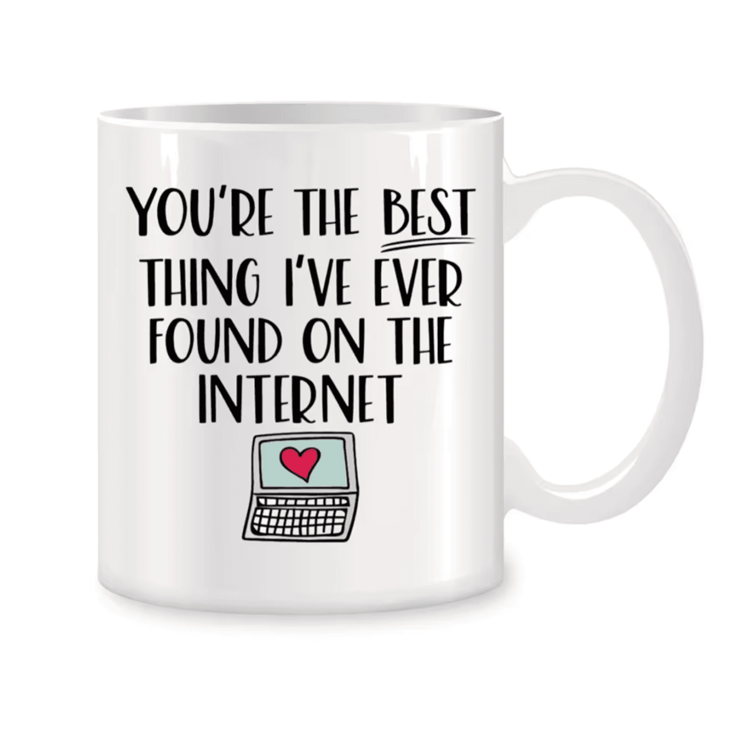 Ten kubek to idealny sposób, by powiedzieć komuś, jak bardzo go cenisz — zwłaszcza jeśli poznaliście się online. Napis „You’re the best thing I’ve ever found on the Internet” to oryginalne wyznanie z przymrużeniem oka, które wywoła uśmiech przy każdej filiżance kawy.