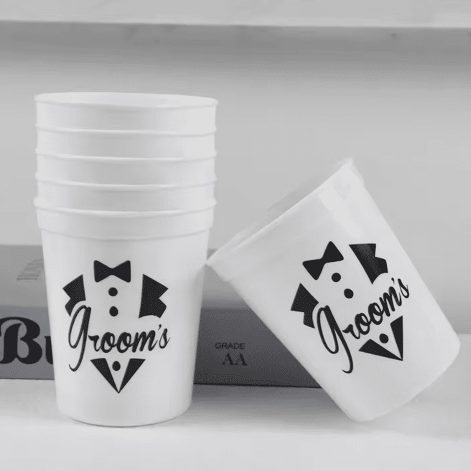 Podkreśl wyjątkową rolę pana młodego. Zamów zestaw 5 białych kubków i stwórz spójny, elegancki styl imprezy.
