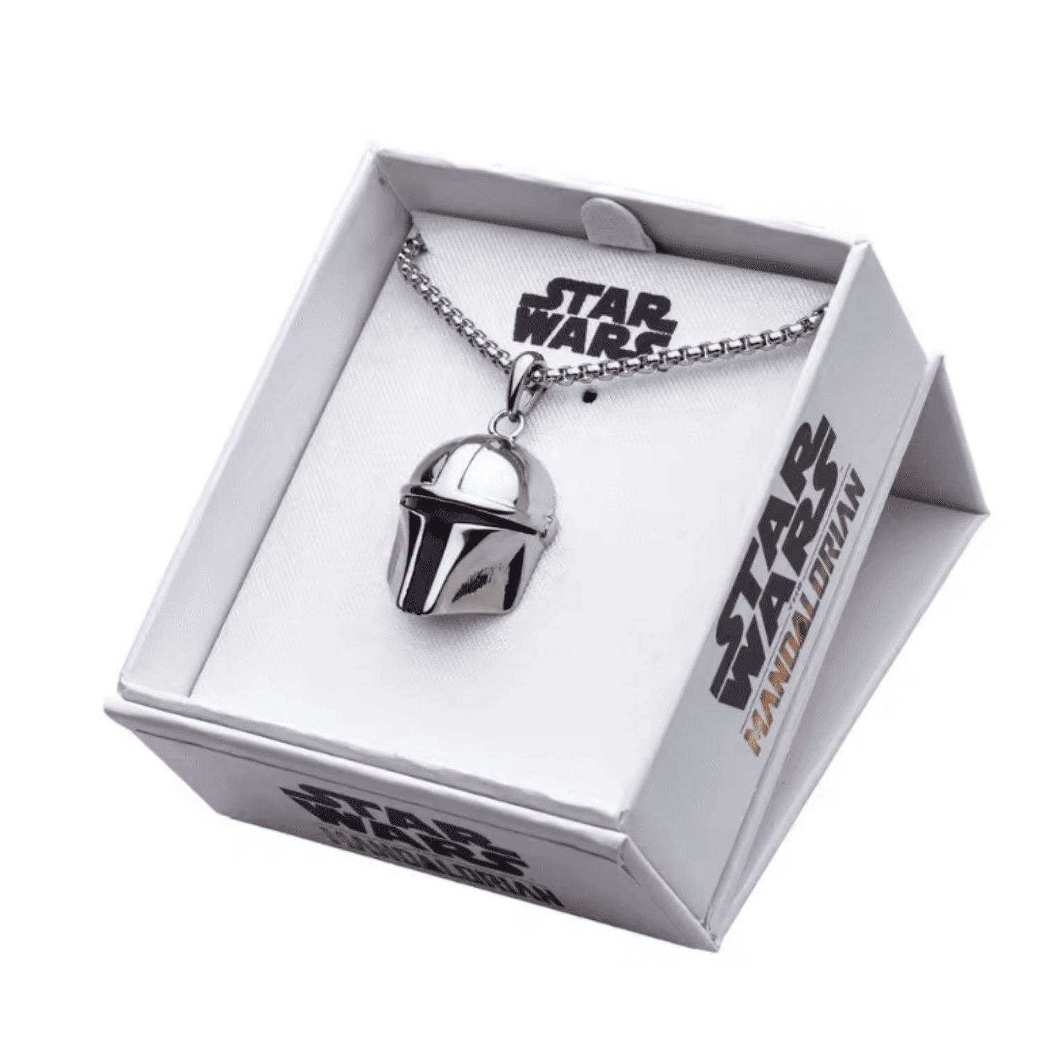 Hełm Mandalorian to symbol honoru i tajemnicy. Ten naszyjnik łączy elegancję z charakterystycznym wzorem, dzięki czemu sprawdzi się zarówno jako modny dodatek, jak i kolekcjonerski gadżet dla fana Gwiezdnych Wojen.