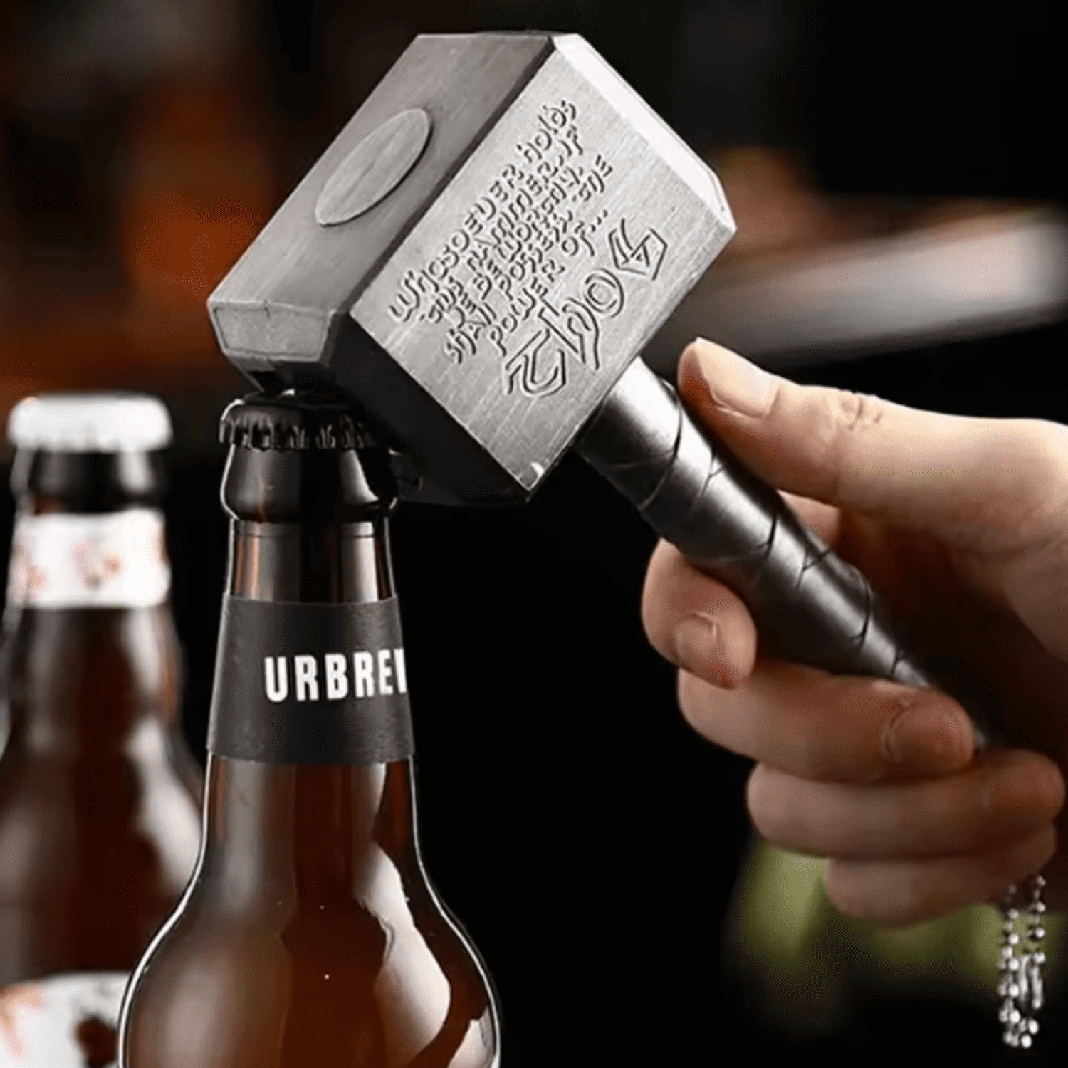 Ten otwieracz do butelek inspirowany młotem Thora to gadżet, który wyróżnia się designem i solidnością. Wykonany ze stali nierdzewnej, łączy funkcjonalność z oryginalnym wyglądem. To narzędzie i dekoracja w jednym.