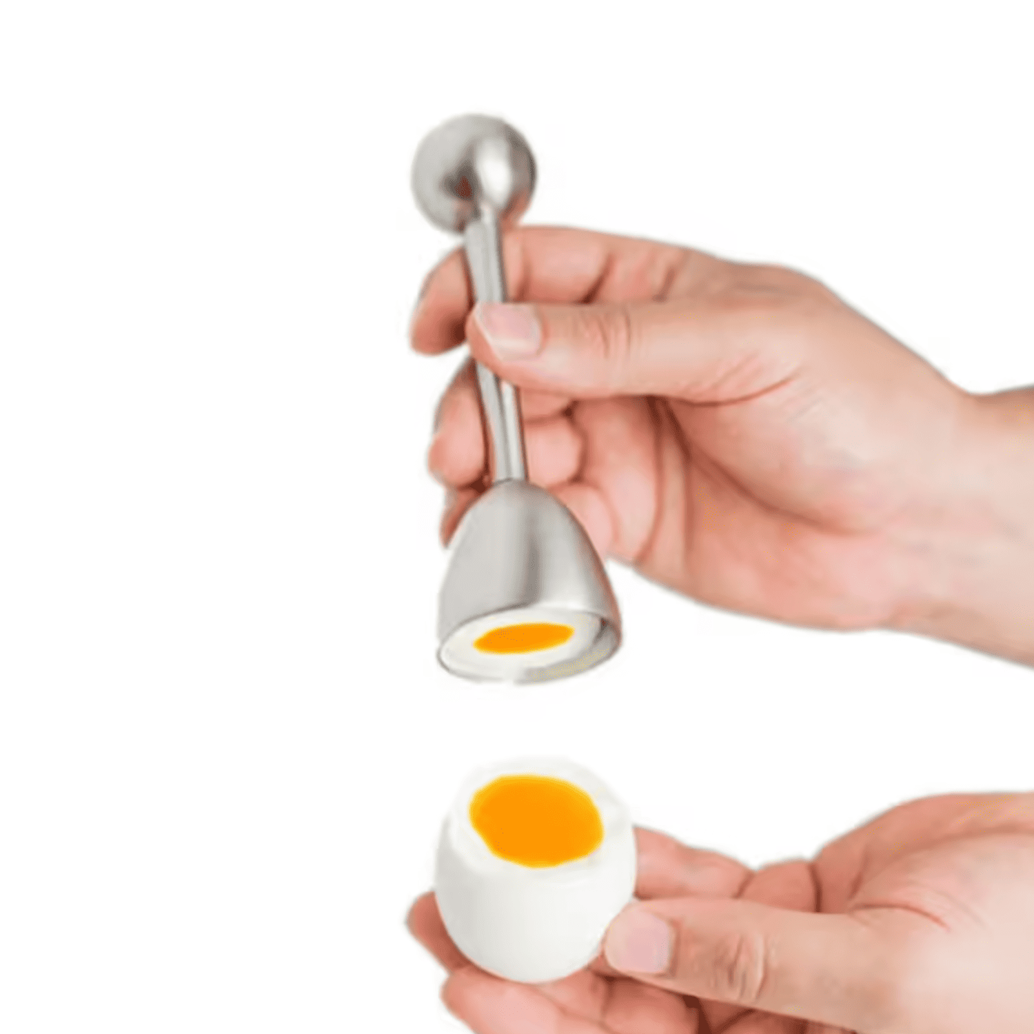 Wykonany z wysokiej jakości stali nierdzewnej, Egg Topper Cutter to narzędzie używane przez szefów kuchni i miłośników śniadań na całym świecie. Dzięki sprężystemu mechanizmowi wystarczy unieść kulkę i puścić – delikatne uderzenie ostrza idealnie nacina skorupkę. Urządzenie działa szybko, czysto i bezpiecznie.