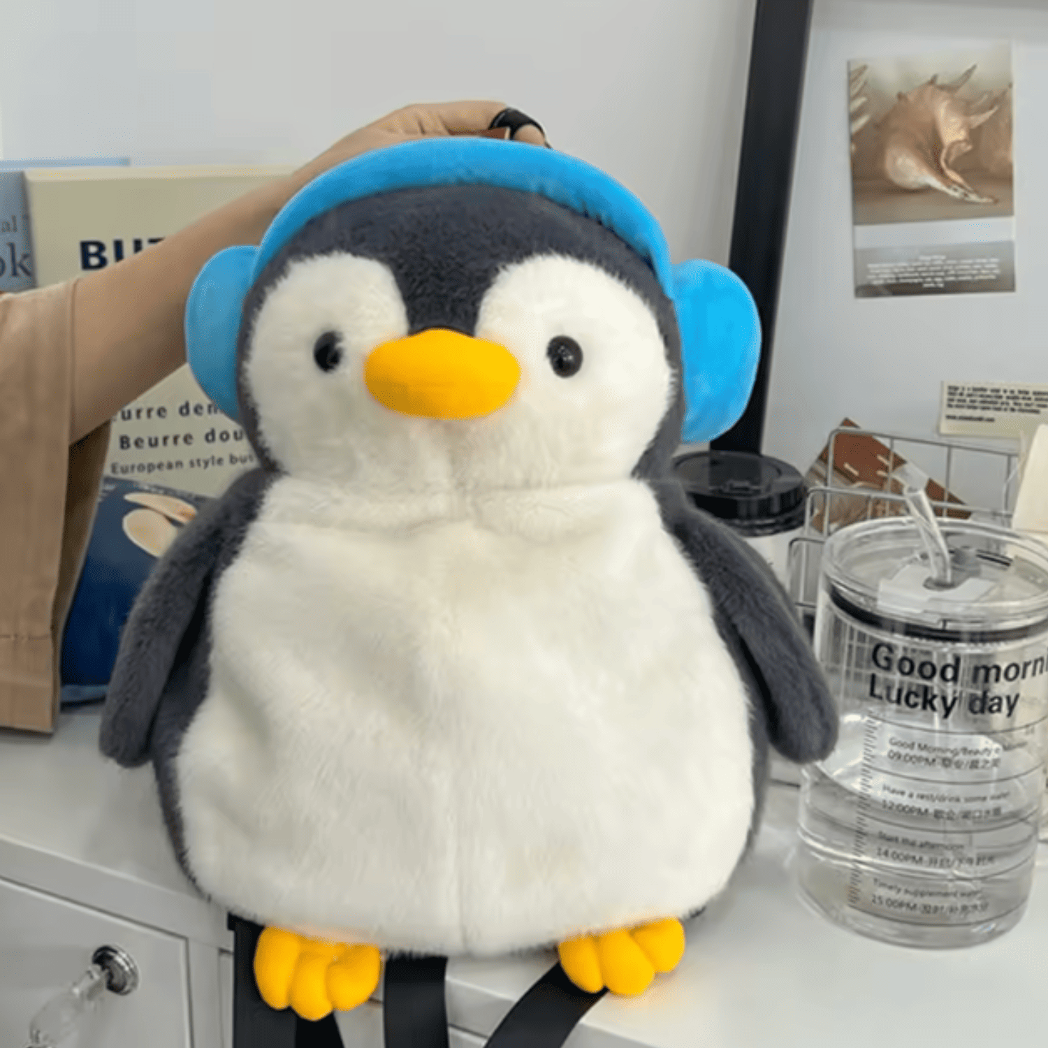 Ten uroczy plecak w kształcie pingwina to połączenie radości z praktycznością. Jego miękka, pluszowa faktura sprawia, że dzieci chętnie go noszą, a zabawny design przyciąga wzrok i wywołuje uśmiech.
