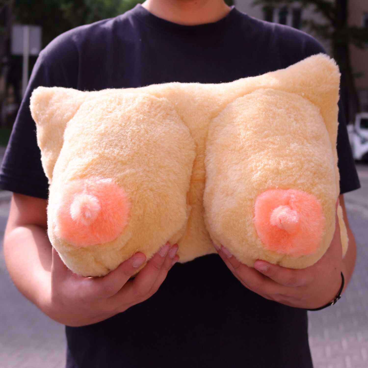 • W sprzedaży poduszka biust z różowymi sutkami.