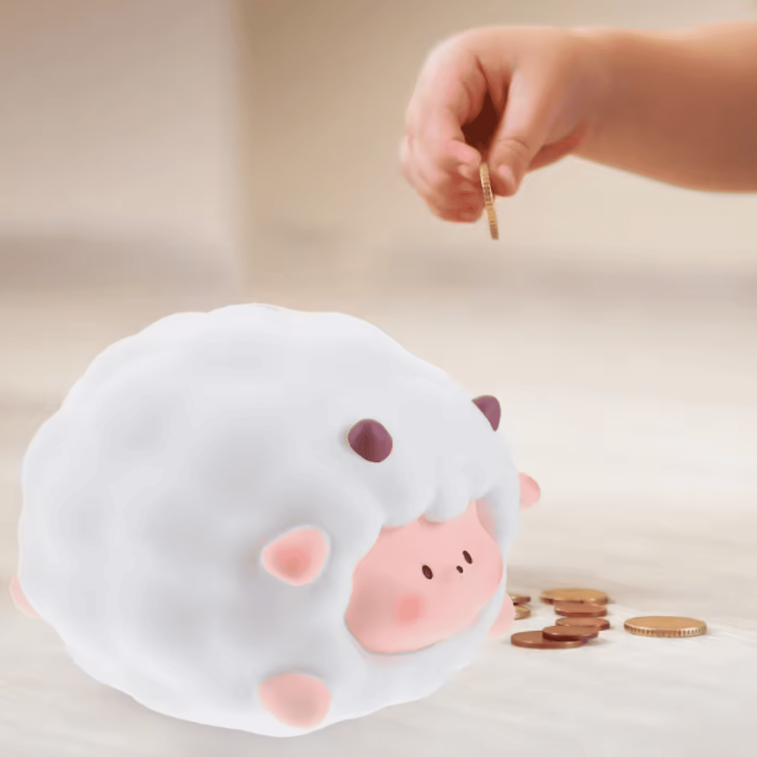 Ta skarbonka w kształcie owieczki to doskonały sposób, by zachęcić dzieci do odkładania drobnych. Jej miękka, winylowa powierzchnia sprawia, że jest bezpieczna w codziennym użytkowaniu, a sympatyczna buzia przyciąga wzrok i wzbudza uśmiech. To nie tylko pojemnik na monety, ale także piękna ozdoba pokoju .